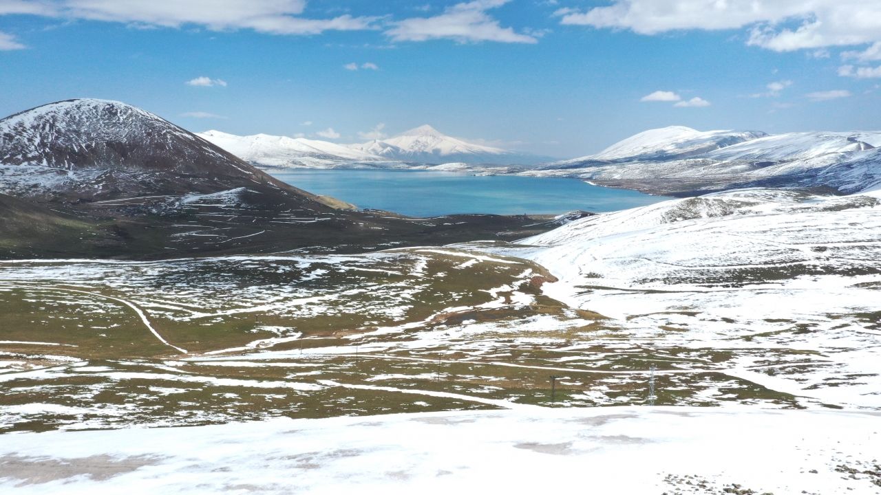Taşlıçay ilçesindeki Balık Gölü çevresinde bulunan dağlarda kar, nisan ayının sonuna doğru erimeye başladı. Bir yanı bahar, bir yanı kış olan dağlar, manzarasıyla etkileyici görüntüler oluşturuyor.