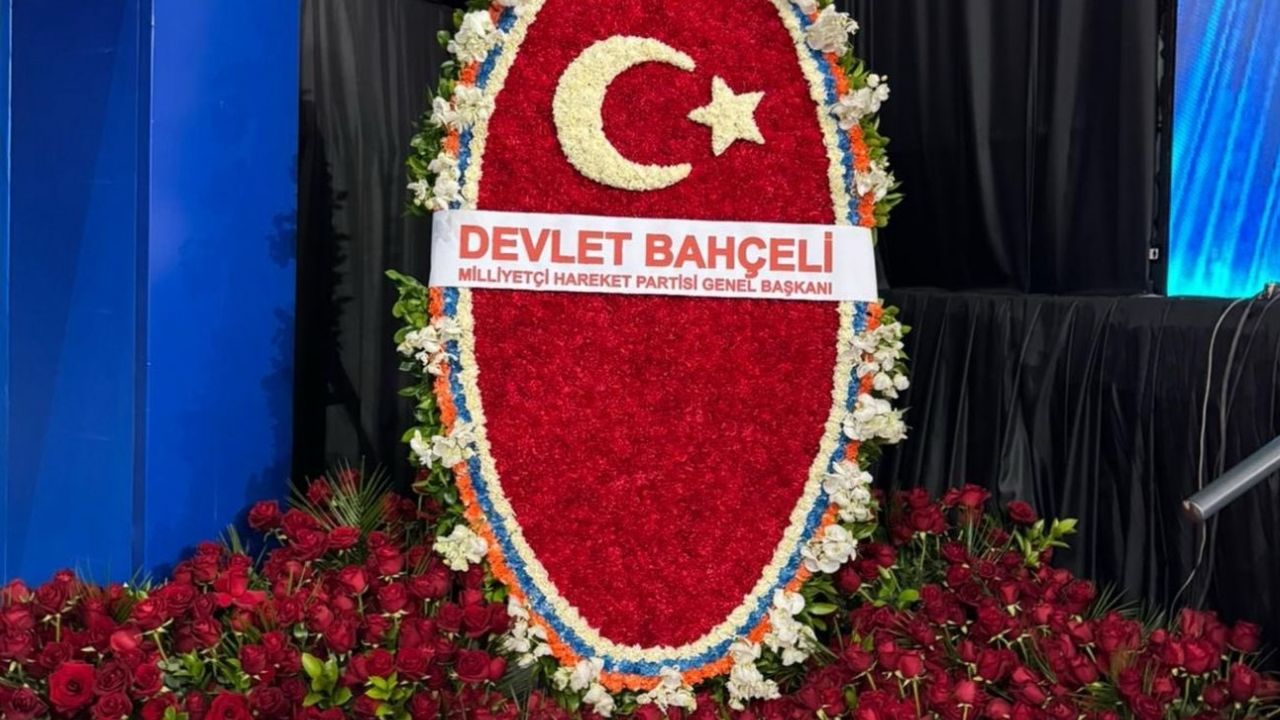Arka planda led ekranların yerleştirildiği sahne hazırlanırken, Gazi Mustafa Kemal Atatürk ile Cumhurbaşkanı Erdoğan'ın fotoğrafları ve Türk bayrakları salonda yer aldı.
