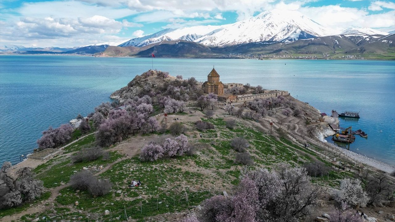Yılın her döneminde farklı manzarasıyla insanları cezbeden Akdamar Adası, bugünlerde de Van Gölü'nün ve gökyüzünün maviliği ve çiçek açan badem ağaçlarıyla ziyaretçilerini ağırlıyor.