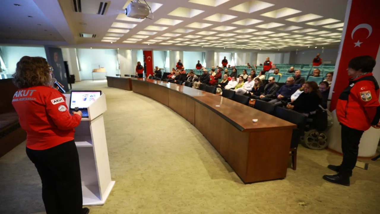 AKUT İzmir Ekibi ve AKUT Selçuk Ekibi tarafından “Farkındalık En Güçlü Önlemdir” sloganı ile Efes Selçuk’ta yaşayan engelli bireyler ve ailelerine yönelik “Acil Durum ve Doğal Afet Semineri” düzenlendi. Prof. Dr. Ahmet Taner Kışlalı Toplantı Salonu’nda düzenlenen seminerde deprem öncesinde alınması gereken önlemler, deprem anı ve sonrasında yapılması gerekenler hakkında bilgi verildi.İZMİR (İGFA) - Seminerde yaptığı konuşmada AKUT Selçuk Ekibinin 2022 yılında Efes Selçuk’ta faaliyetlerine başladığını hatırlatan AKUT Selçuk Ekibinden Alim Ateş, ekibe verdiği desteklerden dolayı Efes Selçuk Belediyesi’ne ve Belediye Başkanı Filiz Ceritoğlu Sengel’e teşekkür etti.