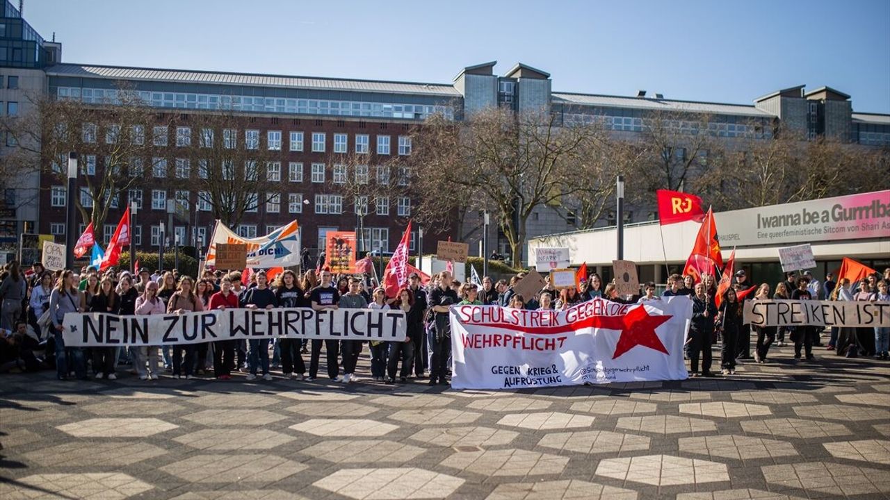 BERLİN (AA) - Almanya'da öğrenciler, 1 Ocak'ta yürürlüğe giren ve asker sayısını artırmayı hedefleyen askerlik hizmeti yasasını ve zorunlu askerliği protesto etti.