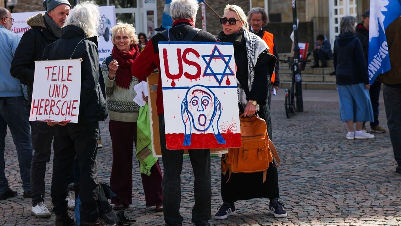 Osnabrück Barış Girişimi (OFRI) tarafından Osnabrück Tiyatro Meydanı'nda, 'Savaşları reddedin-Barışı sağlayın' temasıyla protesto gösterisi düzenlendi.