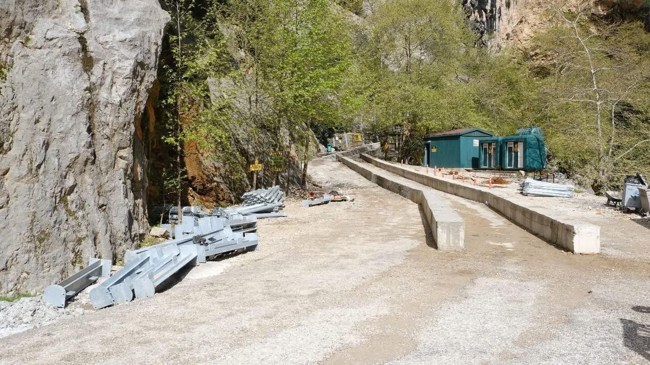 Mağaraya ulaşmak için kullanılan yürüyüş yolunun girişe kadarki 200 metrelik bölümünde çelik kafes yerleştirme çalışması yürütüldü.