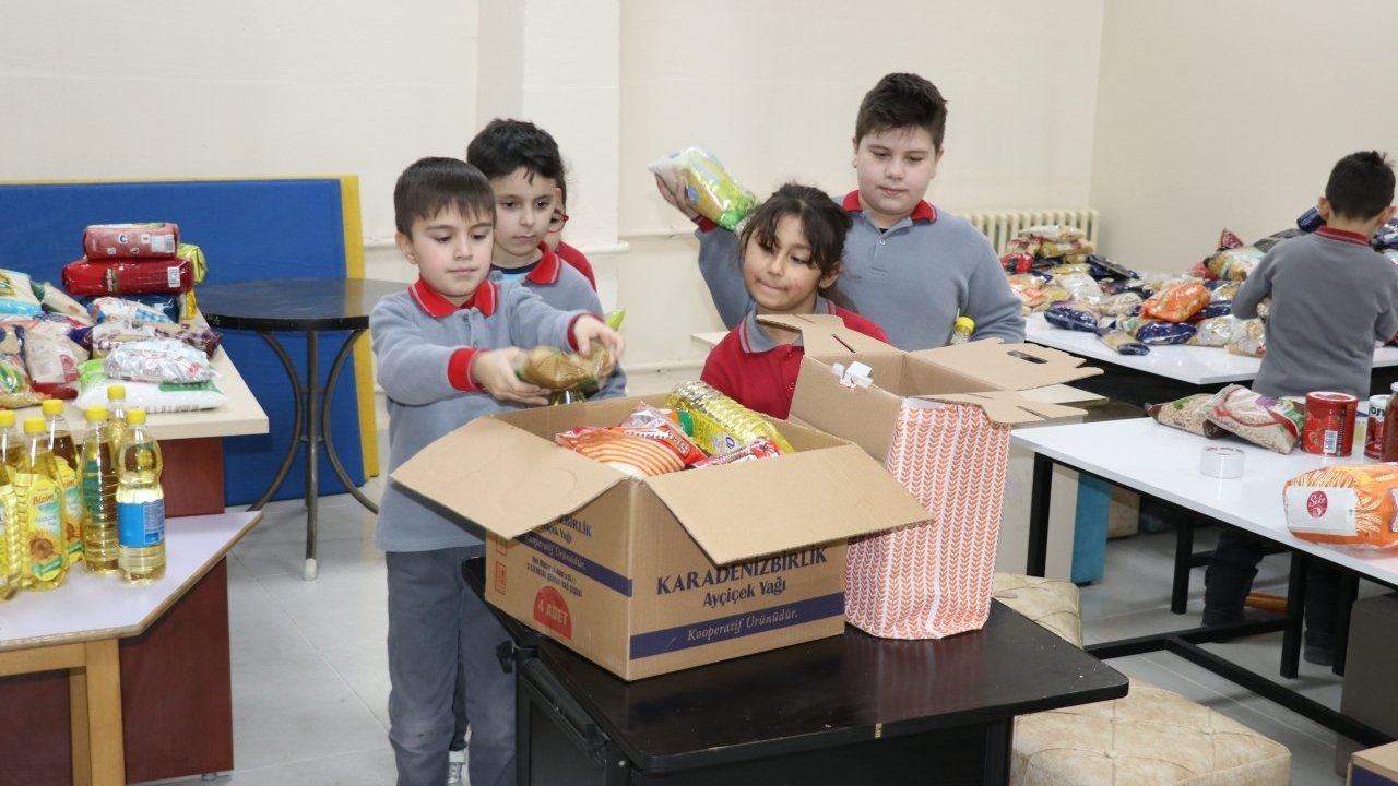 Öğrencilerin kolilediği gıda malzemeleri, okul yönetimi tarafından belirlenen ihtiyaç sahiplerine verilecek.