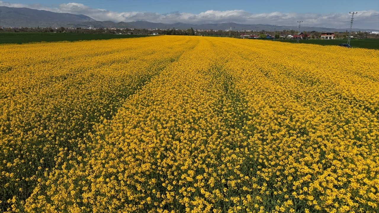 Ayçiçeğinden önce tarlaları sarıya boyayan kanola, rengiyle hem göz kamaştırıyor hem de kahverengi toprağı bir halı gibi örten sarısıyla güneşi çağrıştırıyor.