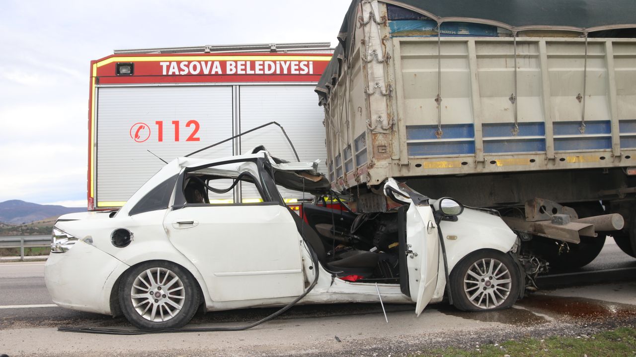 AMASYA (AA) - Amasya'nın Taşova ilçesinde tıra çarpan otomobildeki 2 kişi hayatını kaybetti.