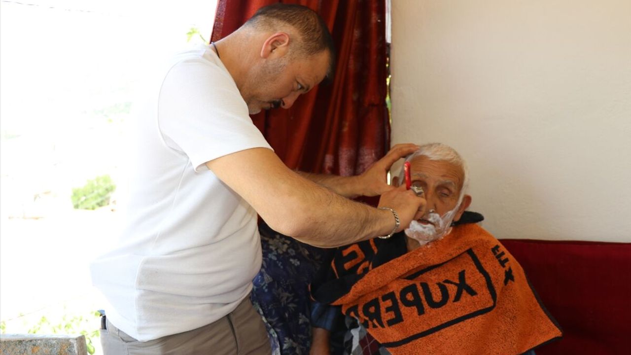 Mesleği berberlik olan Üçler Mahallesi Muhtarı Coşan Aylak, 6 yıldır her bayram öncesinde mahalleyi dolaşarak, yaşlı ve berbere gidemeyecek mahalle sakinlerinin tıraşını yapıyor.