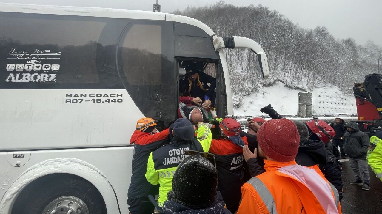 İstanbul'dan İran'a gitmek için yola çıkan Nader M. idaresindeki 90 AB 684 yabancı plakalı yolcu otobüsü, otoyolun Bolu Dağı Tüneli üçüncü viyadük üzerinde önünde seyreden B.K. yönetimindeki 06 ESH 179 plakalı tıra arkadan çarptı.
