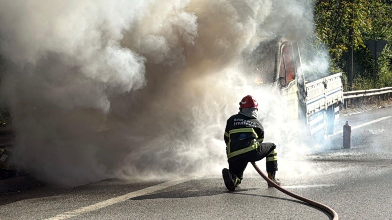 SAKARYA (AA) - Anadolu Otoyolu'nun Sakarya kesiminde seyir halindeyken yanan kamyonet, itfaiye ekipleri tarafından söndürüldü.