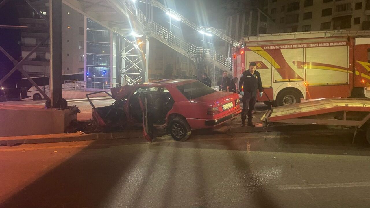 Keçiören ilçesi Yozgat Bulvarı'nda 06 JJ 570 plakalı otomobil, sürücüsünün direksiyon hakimiyetini kaybetmesi sonucu üst geçidin orta refüjdeki destek ayağına çarptı.