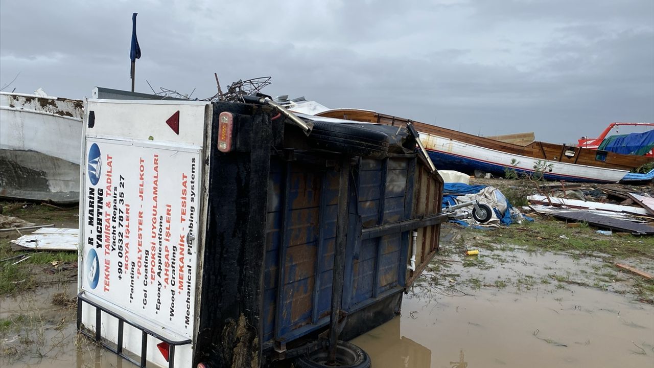 Yağıştan dolayı su baskınları ve taşkınların yaşandığını belirten Şahin, 'Dün akşam yoğun ve şiddetli rüzgar ve bu rüzgarla beraber deniz istikametinden gelen hortumlarla ilçelerimiz sınandı. Çok ciddi zararlar da oldu. Bugün Aksu Çayı'nın kenarındayız. Hortum tekneleri alıp karada bir nevi düğüm yapmış, bir yerden bir yere savurmuş.' dedi.