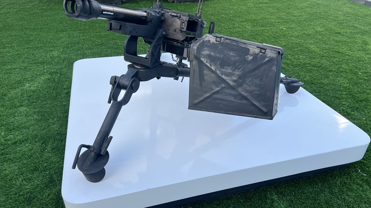 MAKS40'ın fuarda piyade kullanımı için çatalayak (tripod/üç ayak) üzerine monte edilmiş versiyonu tanıtıldı.