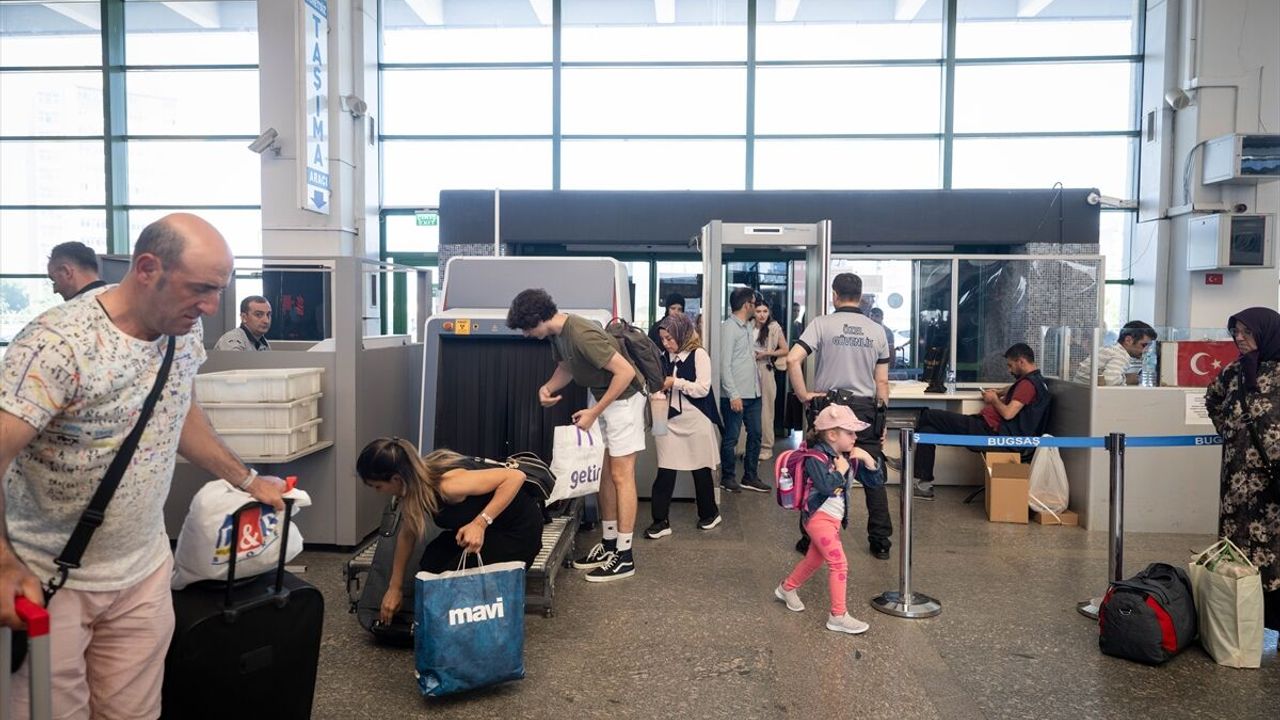 Vatandaşlar, üst araması ve valiz kontrolü yapılarak terminale alınıyor.
