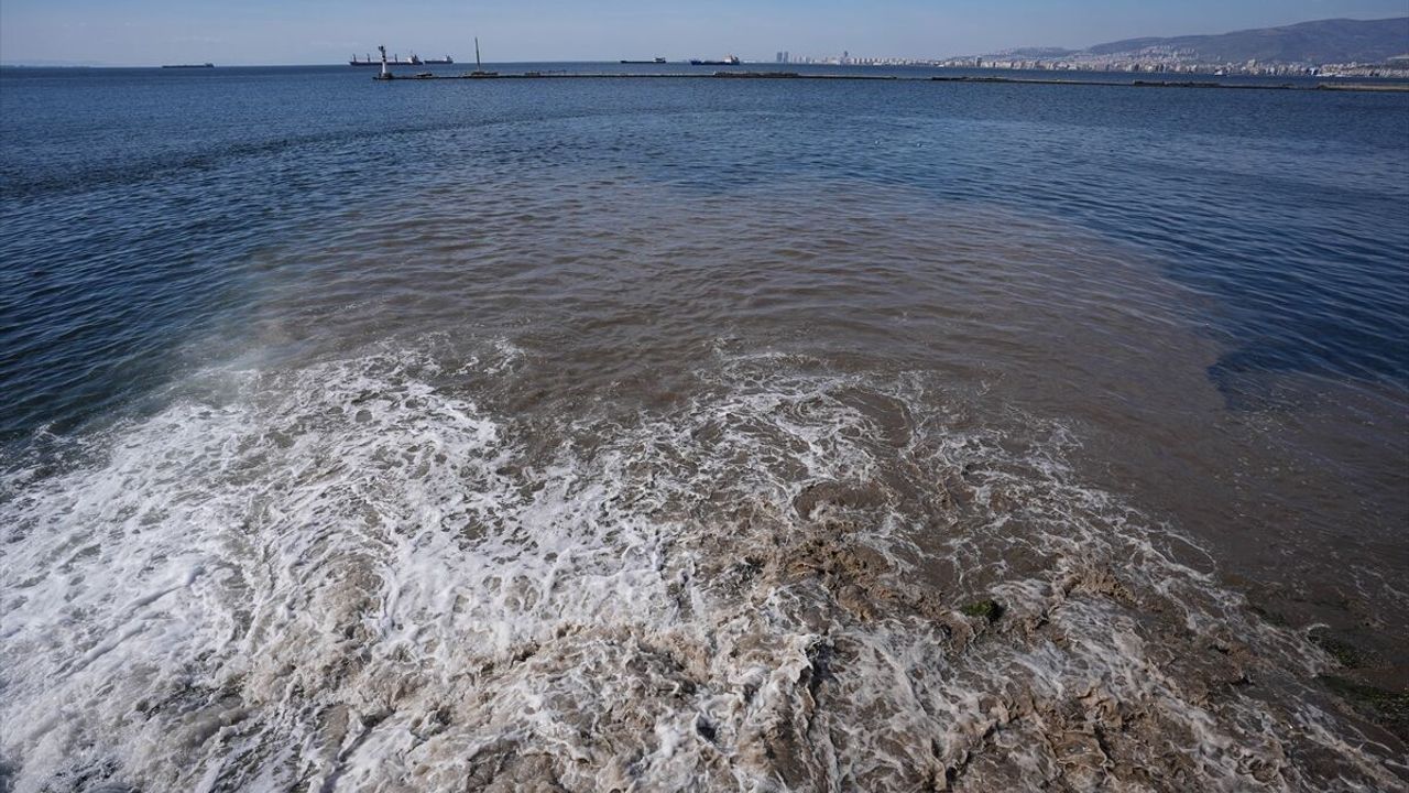 İZMİR (AA) - İzmir'de, atık su deşarjının yapıldığı körfezde suyun rengi değişti, çevreye kötü kokular yayıldı.