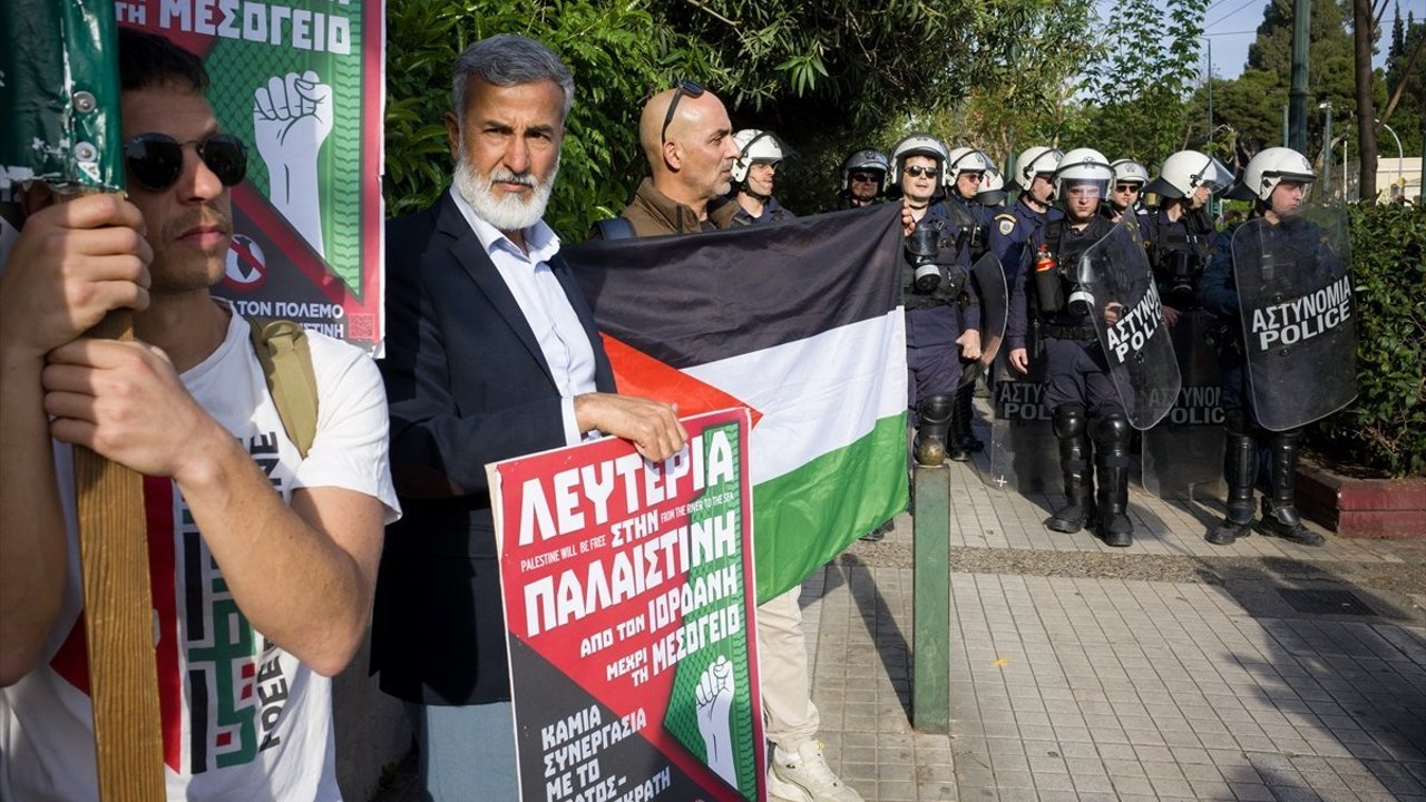 Başkent Atina'da March to Gaza Greece grubunun çağrısıyla Dışişleri Bakanlığı önünde gerçekleştirilen eylemde katılımcılar, filoya yönelik müdahaleye tepki gösterdi.