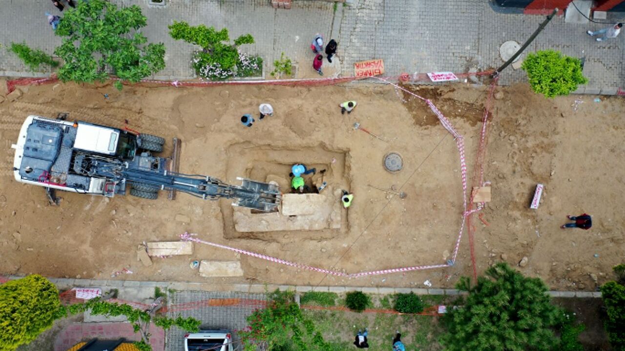 Kemer Mahallesi'nde 25 Nisan'da yol yenileme çalışması sırasında insan kemiklerine rastlanması üzerine çalışmalar durdurulmuştu.
