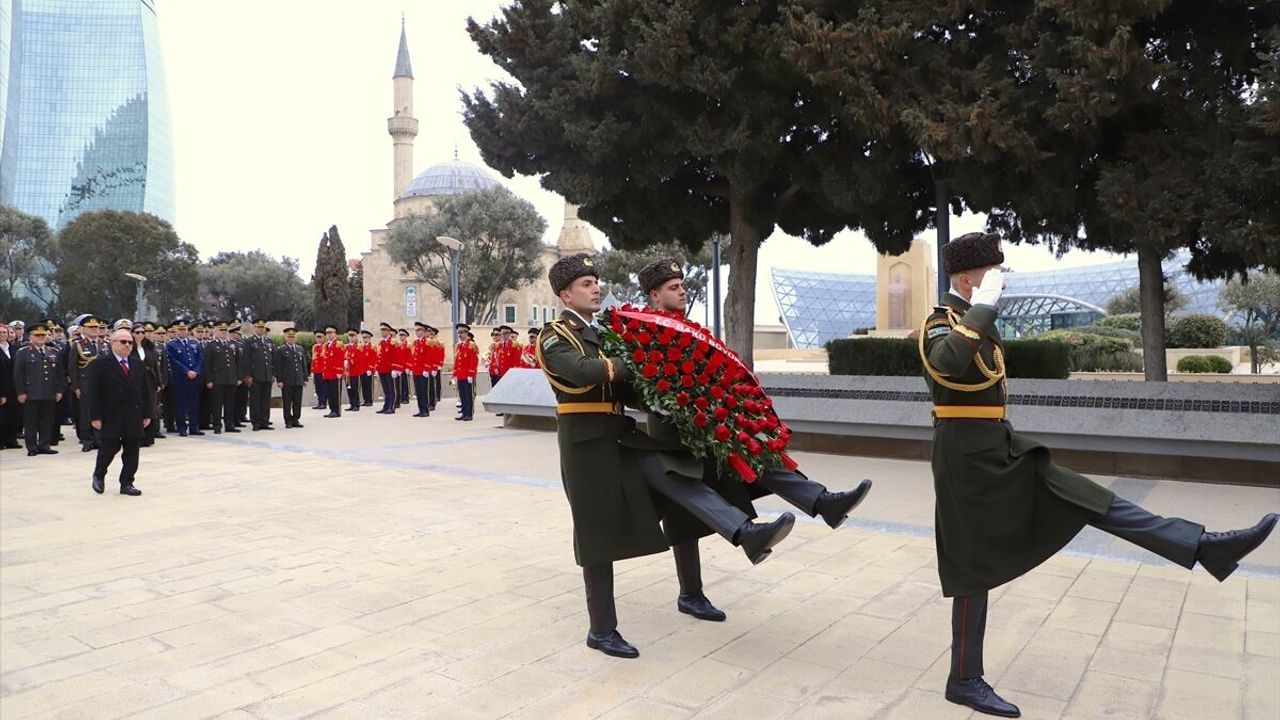 Türk Şehitliği'ndeki törene, Türkiye'nin Bakü Büyükelçisi Birol Akgün, Büyükelçilik müşavirleri, askeri yetkililer, Bakü'deki Türk kurum ve kuruluşların temsilcileri ile vatandaşlar katıldı.