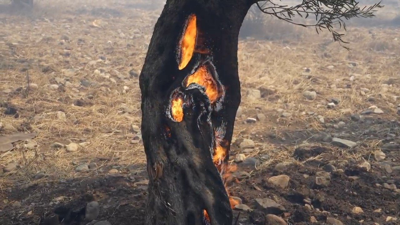Eminkuyu mevkisindeki eski katı atık sahasında henüz belirlenemeyen sebeple başlayan yangın, kısa sürede büyüyerek zeytinliklere sıçradı.