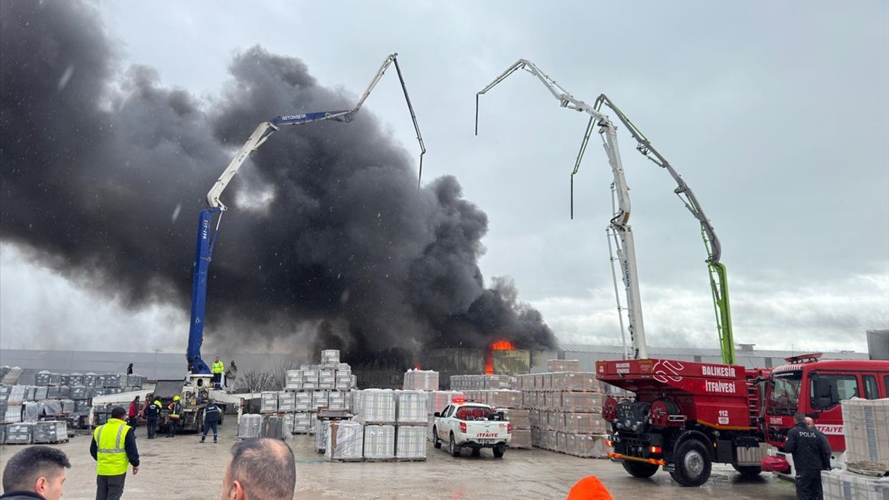 BALIKESİR (AA) - Balıkesir'de yapı malzemeleri deposunda çıkan yangın söndürülmeye çalışılıyor.
