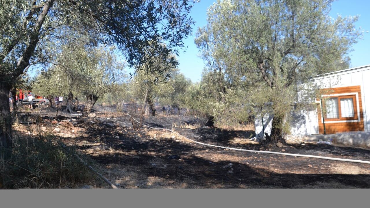 Sahilkent Mahallesi'ndeki bir sitede bulunan zeytinlikte henüz belirlenemeyen nedenle yangın çıktı.