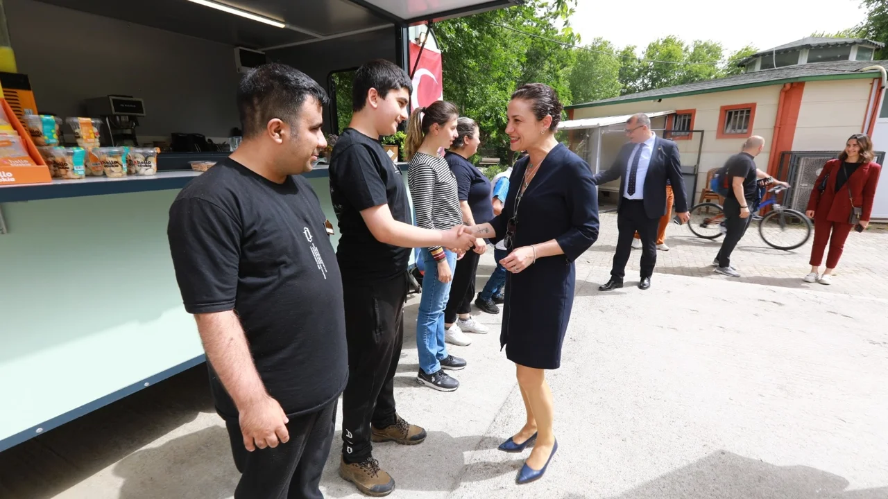 İzmir'de Efes Selçuk Belediye Başkanı Filiz Ceritoğlu Sengel, Engelsiz Kafe’de çalışan gençleri ziyaret etti.İZMİR (İGFA) -Efes Selçuk’un engel tanımayan gençlerine istihdam olanağı yaratmak, onların sosyalleşmesini sağlamak için Aralık ayında açılan Engelsiz Kafe’de çalışan gençleri ziyaret eden Başkan Sengel; “Gençlerimiz engel tanımıyor, bütün engelleri aşıyorlar. Onların engelleri aşması bizler için de büyük bir mutluluk oluyor” dedi.