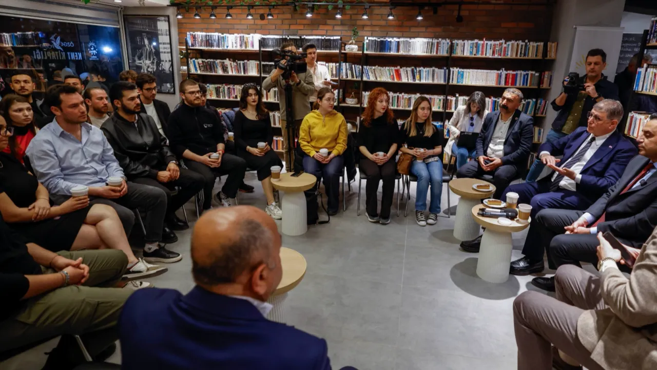 İzmir Büyükşehir Belediye Başkanı Dr. Cemil Tugay, Çiğli’de yurttaşlarla iftarda bir araya geldikten sonra, üniversite öğrencileri ile buluştu. Gençlere siyasete katılım çağrısı yapan Başkan Tugay, iki elini yumruk yaparak “Özgürlük olmadan, kalkınma olmuyor. Bu hareketimi unutmayın” dedi.İZMİR (İGFA) - İzmir Büyükşehir Belediye Başkanı Dr. Cemil Tugay, Çiğli'deki iftarın ardından üniversite öğrencileri ile bir araya geldi. Çiğli Belediye Başkanı Onur Emrah Yıldız’ın da katıldığı Çiğli Belediyesi Özge Polat Kent Kitaplığı’ndaki buluşmada, gençler Tugay’a sorularını yöneltti. Başkan Tugay, meslek hayatına adım atmaya hazırlanan öğrencilerle tecrübelerini paylaştı. Kent sorunlarına dair açıklamalarda bulunan Başkan Tugay iki elini havaya kaldırarak “Özgürlük olmadan, kalkınma olmuyor. Bu hareketimi unutmayın” dedi.