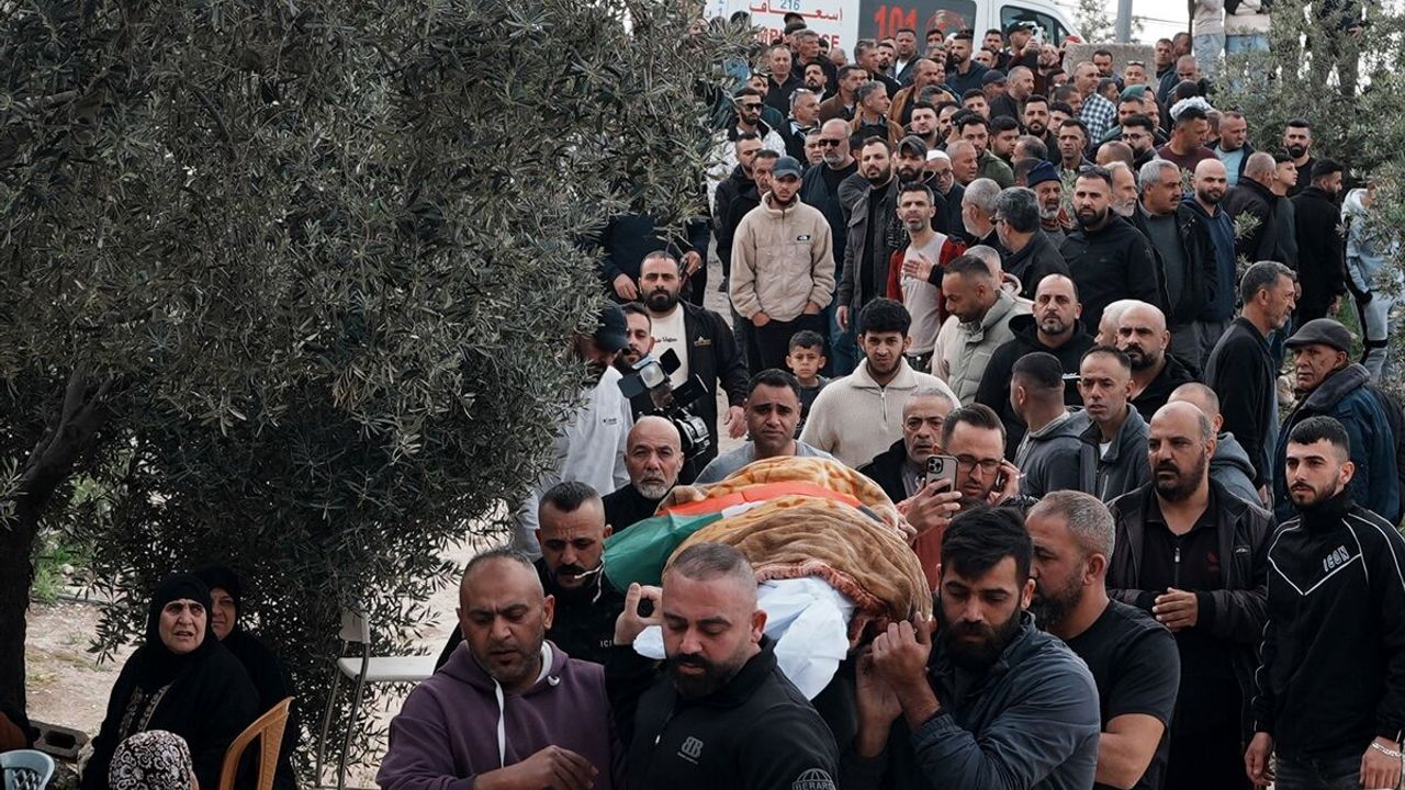Cenaze törenine katılan binlerce Filistinli, İsrail işgalini kınayan sloganlar attı.