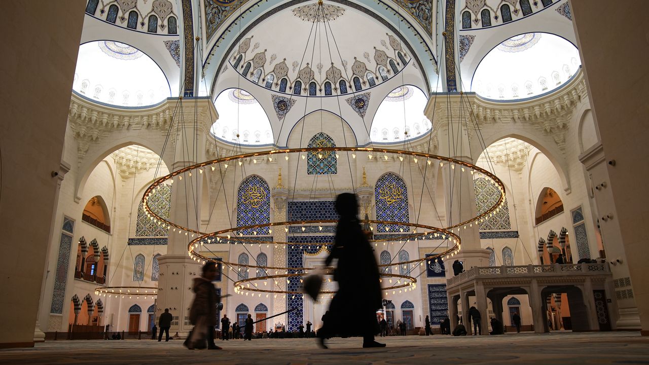 Büyük Çamlıca Camisi'nde, İstanbul Valisi Davut Gül'ün de katıldığı programda Diyanet İşleri Başkanı Prof. Dr. Safi Arpaguş, kürsüden bu gecenin önemini anlatıp, dua etti.