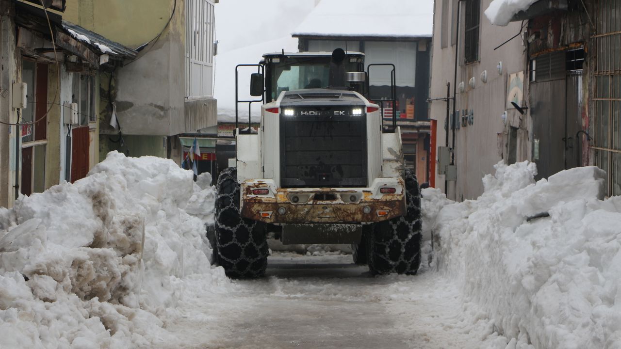Belediye ekipleri de ilçe merkezindeki cadde ve sokakları biriken karlardan temizlemek için çalışma yapıyor.