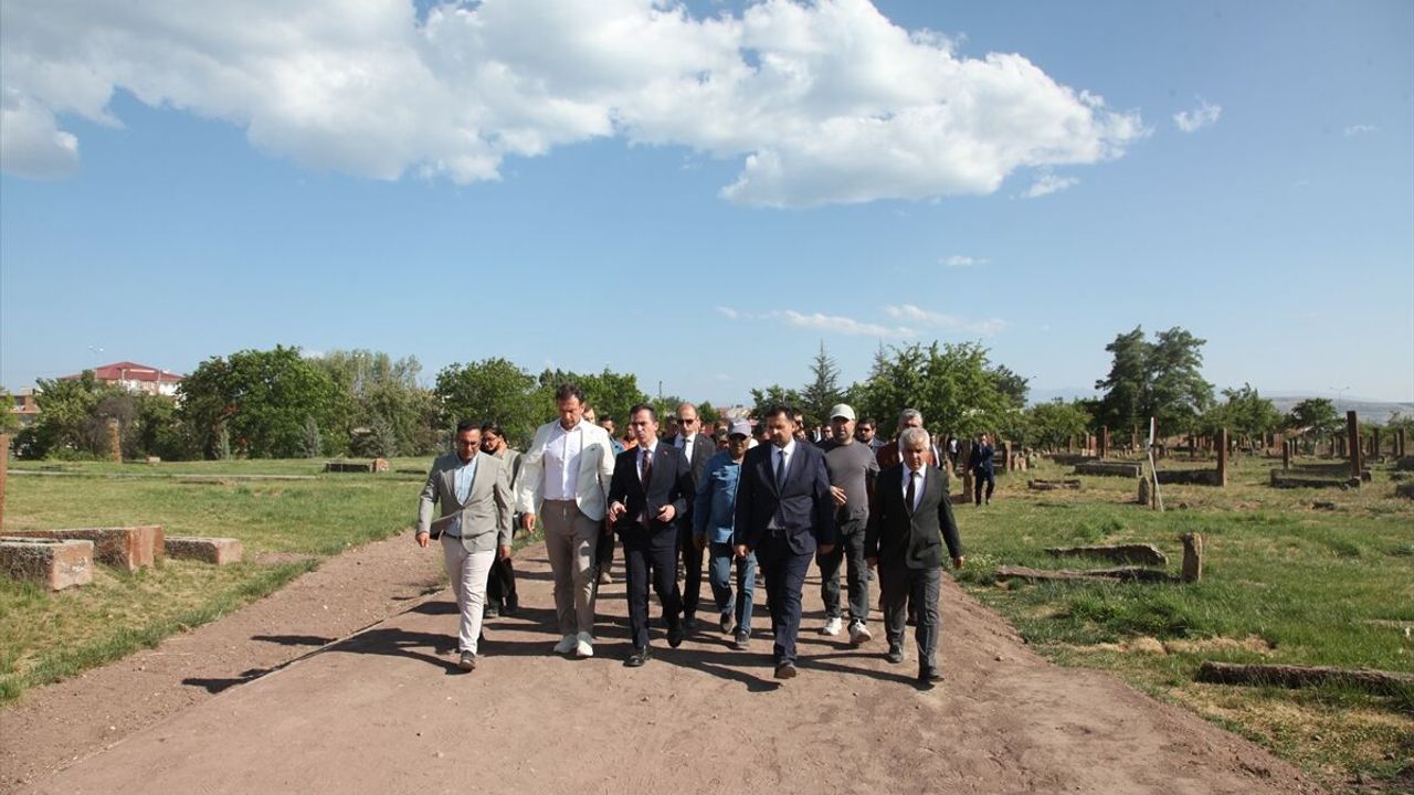 Selçuklu Meydan Mezarlığı'nı da ziyaret eden Karakaya ile Topbaş, Ahlat Müze Müdürü Mikail Ercek ile Kazı Başkanı Dr. Öğretim Üyesi Mehmet Kulaz'dan çalışmalar hakkında bilgi aldı.