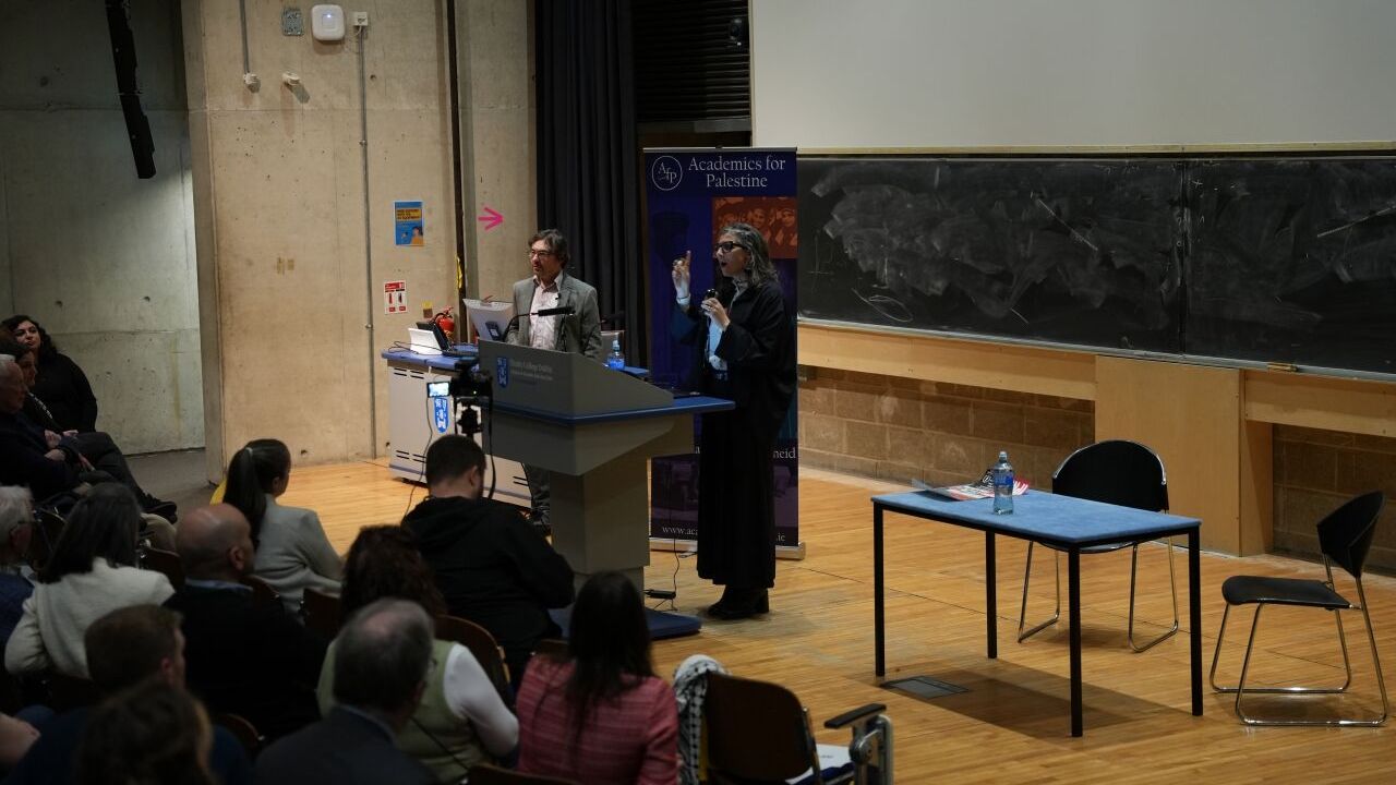 Albanese, Trinity College Dublin'de "Filistin İçin Akademisyenler" tarafından düzenlenen konferansta Filistin'deki insan hakları ihlalleri ve uluslararası hukuk bağlamındaki değerlendirmelerini paylaştı.