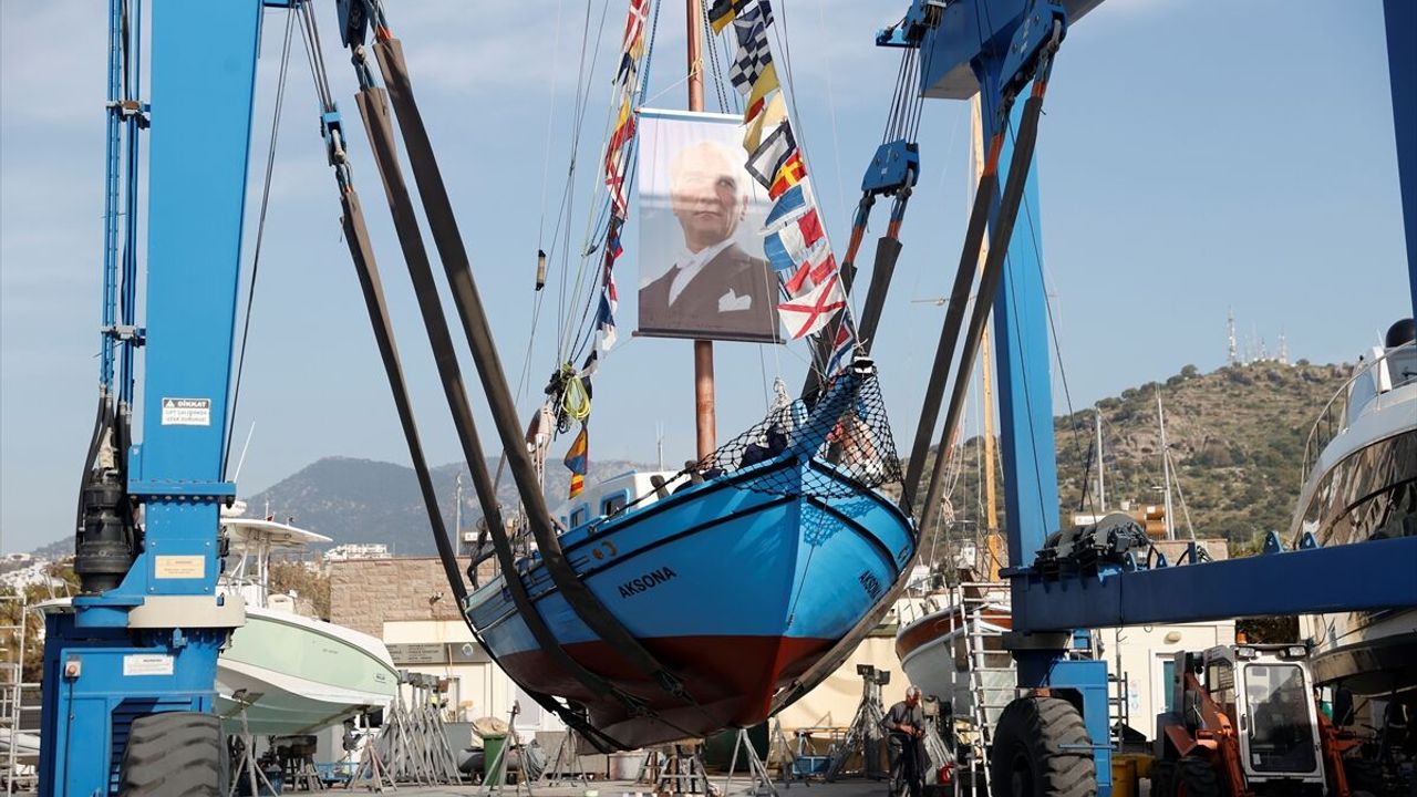 MUĞLA (AA) - Muğla'nın Bodrum ilçesinde 'Aksona Mehmet' olarak anılan ve son sünger avcısı olarak kabul edilen 76 yaşındaki Mehmet Baş, 1962 yapımı 'Aksona' isimli teknesini bakım çalışmasının ardından yeniden denizle buluşturdu.