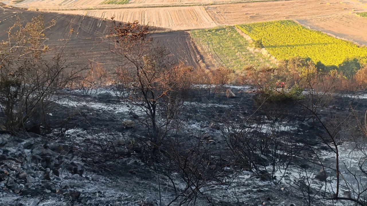 Öğle saatlerinde henüz belirlenemeyen bir nedenle başlayan yangın, rüzgarın etkisiyle zeytinlik alanlara ve anız tarlalarına yayıldı.