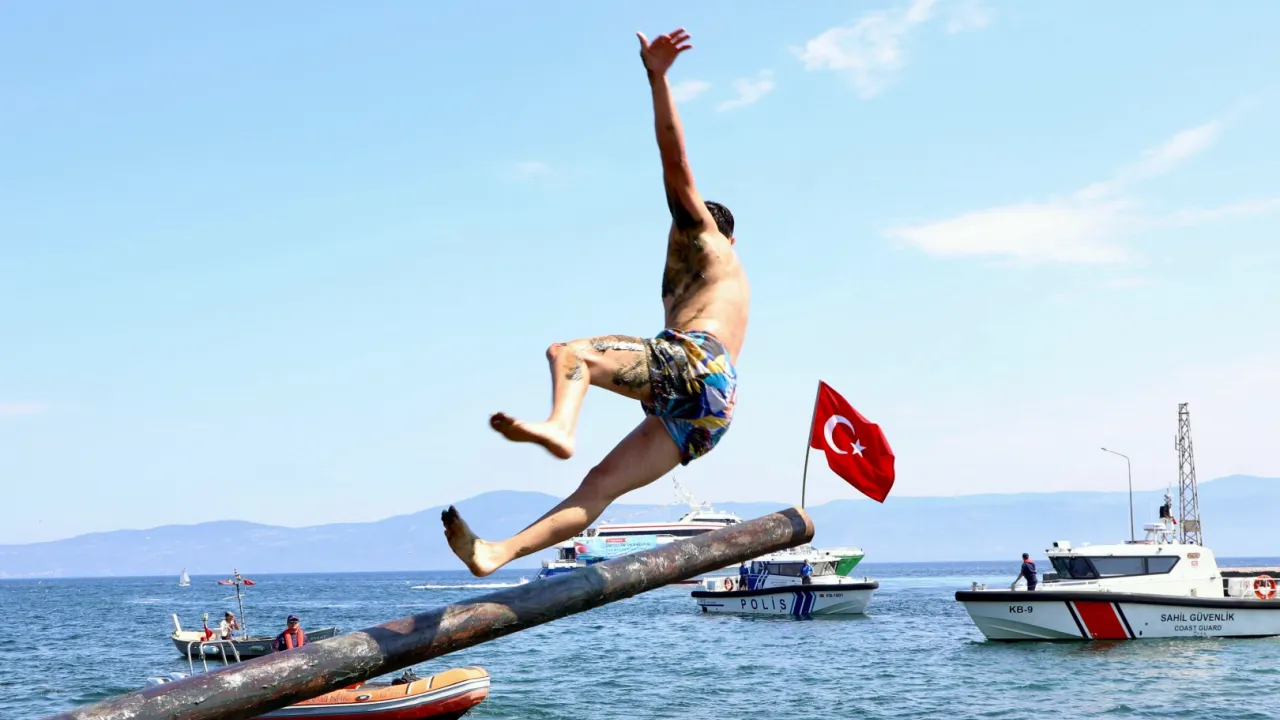 Türkiye’nin karasularındaki hakimiyetini 99 yıl önce ilan eden Kabotaj Kanunu, Bursa'nın Mudanya ilçesinde törenlerle kutlanırken, yağlı direk ve yüzme yarışları renk kattı.BURSA (İGFA) - Türkiye’nin karasularındaki egemenliğini 1926’da ilan eden Kabotaj Kanunu’nun 99. yıldönümü, Mudanya’da kutlandı.