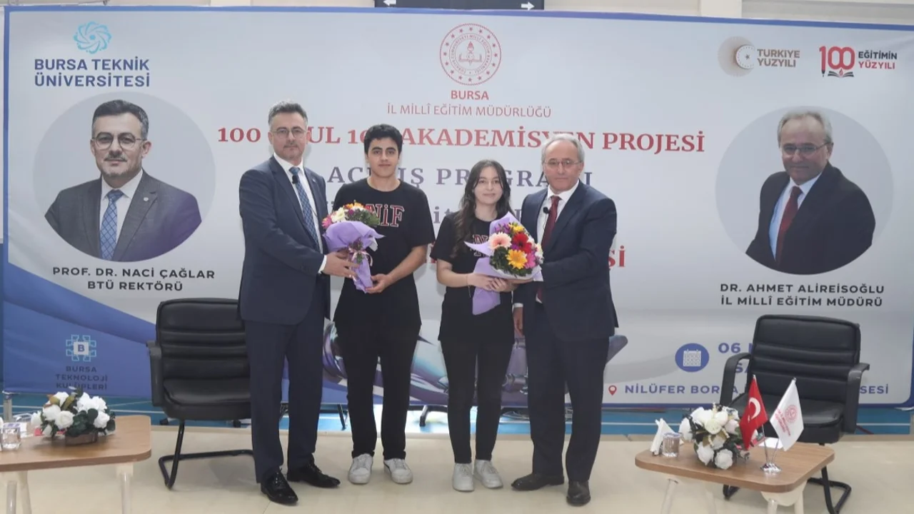 Bursa Teknik Üniversitesi (BTÜ) ve Bursa İl Milli Eğitim Müdürlüğü’nün “100 Okul 100 Akademisyen” projesi, Nilüfer Borsa İstanbul Fen Lisesi’nde start aldı. BTÜ Rektörü Prof. Dr. Naci Çağlar, öğrencilerle buluşarak üniversite kültürünü tanıttı.BURSA (İGFA) - Bursa Teknik Üniversitesi (BTÜ) ve Bursa İl Milli Eğitim Müdürlüğü iş birliğiyle başlatılan “100 Okul 100 Akademisyen” projesinin ilk etkinliği, Nilüfer Borsa İstanbul Fen Lisesi’nde gerçekleşti. BTÜ Rektörü Prof. Dr. Naci Çağlar ve Bursa İl Milli Eğitim Müdürü Dr. Ahmet Alireisoğlu, öğrencilerle bir araya gelerek üniversite kültürü ve kariyer planlaması üzerine sohbet etti.