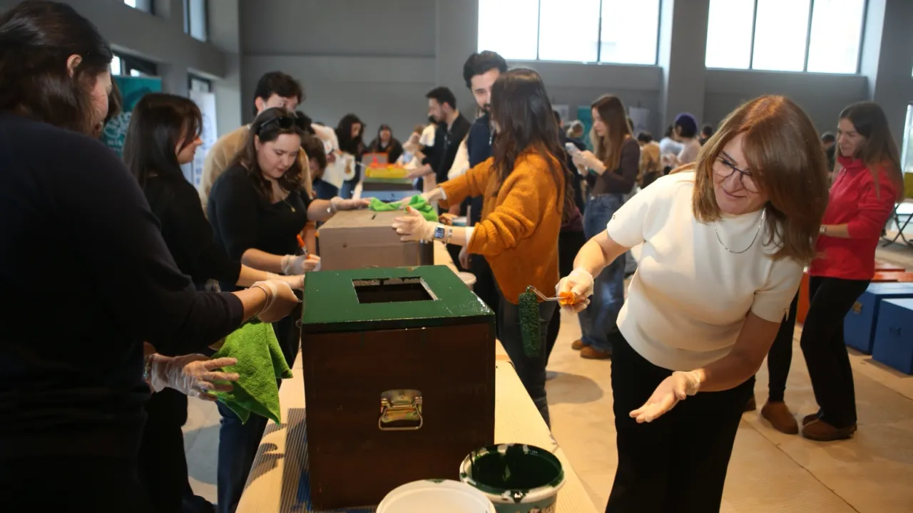 17 Şubat Dünya Kedi Günü dolayısıyla Pancar Deposu’nda gerçekleştirilen etkinlikte 18-29 yaş arası yaklaşık 100 genç, can dostlara yuva olması için eski oy sandıklarını boyayarak dönüştürdü.