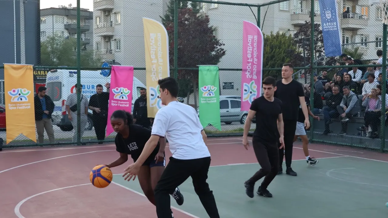 Bursa Büyükşehir Belediyesi tarafından Bursa Uluslararası Spor Festivali kapsamında düzenlenen ‘Sokak Basketbolu Turnuvası’, gençlerin kıyasıya mücadelesine sahne oldu.BURSA (İGFA) - Bursa Valiliği ve Bursa Büyükşehir Belediyesi öncülüğünde Gençlik ve Spor İl Müdürlüğü, İl Milli Eğitim Müdürlüğü, Bursa Kent Konseyi ve Bursa Büyükşehir Belediyespor Kulübü iş birliğinde düzenlenen Bursa Uluslararası Spor Festivali, dolu dolu spor etkinlikleriyle 17 ilçede devam ediyor.
