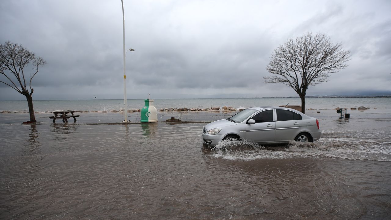 Taşkın nedeniyle Kurşunlu Sahil Yolu'nda denizle kara birleşti. Yollardaki su birikintileri, sürücü ve yayalara zor anlar yaşattı.
