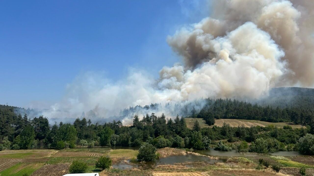 Bursa'nın Orhaneli ilçesinde anızda başlayıp ormana sıçrayan yangına müdahale ediliyor