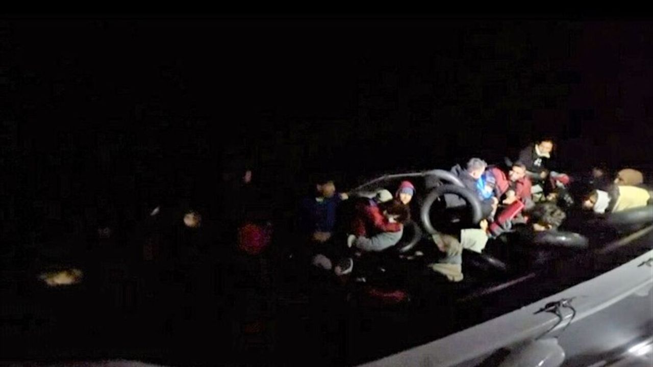 Bölgeye sevk edilen "KB-119" botu ekipleri, lastik bottaki Afganistan uyruklu 15'i çocuk 32 düzensiz göçmeni kıyıya çıkardı.
