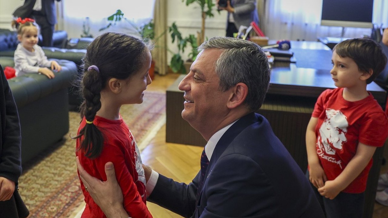 Çocuklarla tek tek tokalaşan Özel, daha sonra koltuğunu Hatay'ın Samandağ ilçesinden gelen 5. sınıf öğrencisi depremzede Elisa Dok'a devretti.