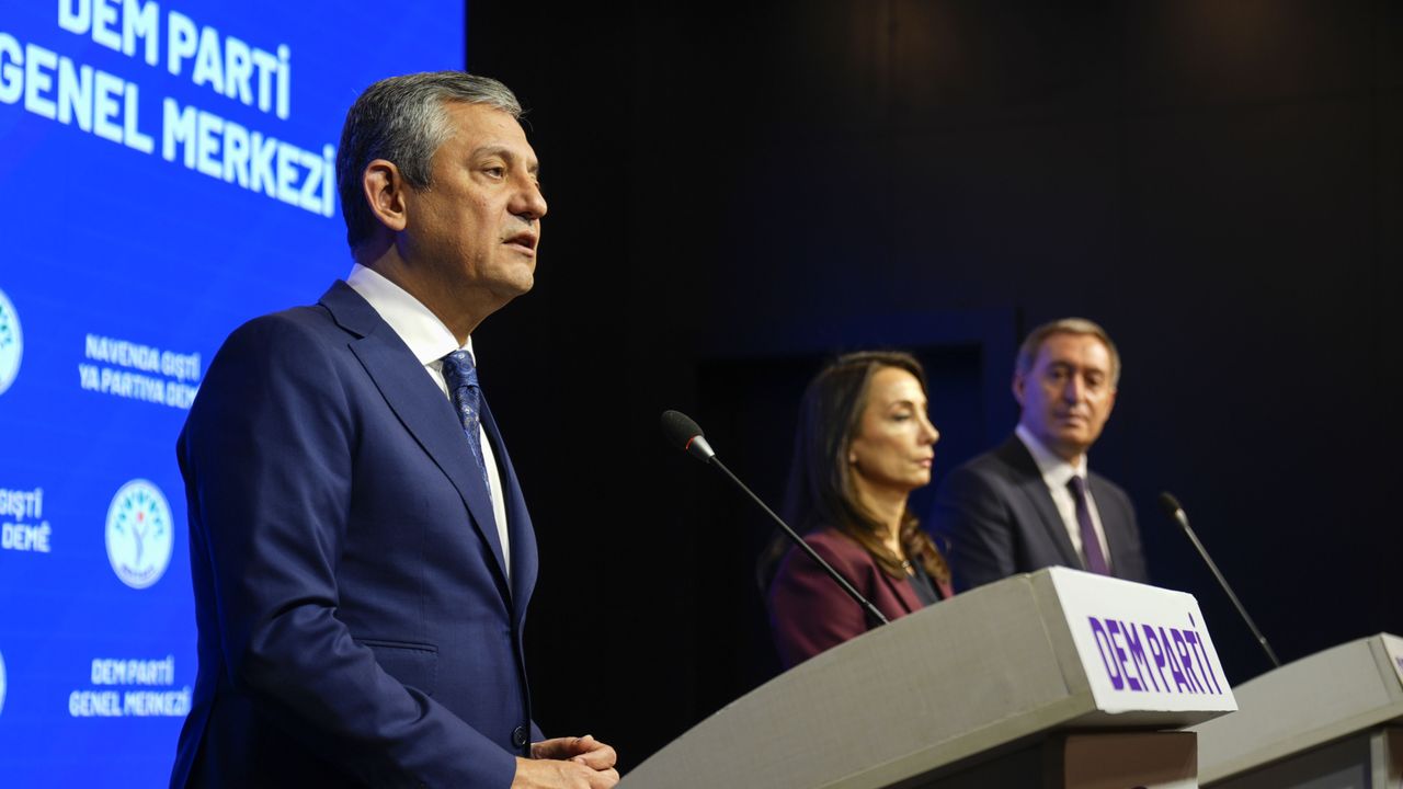 Özel, DEM Parti Eş Genel Başkanları Tülay Hatimoğulları ve Tuncer Bakırhan'ı parti genel merkezinde ziyaret etti.