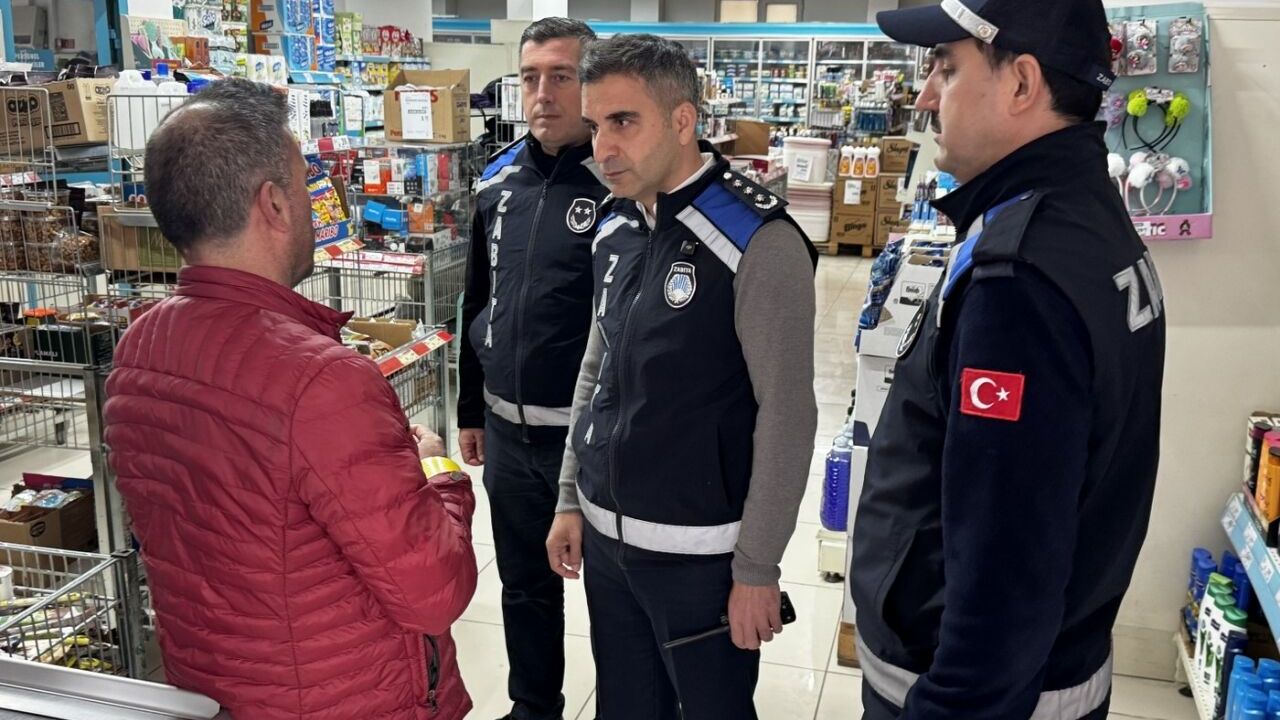 Zabıta Müdürü İrfan Göyhan ve zabıta personeli markete giderek kararı uyguladı.
