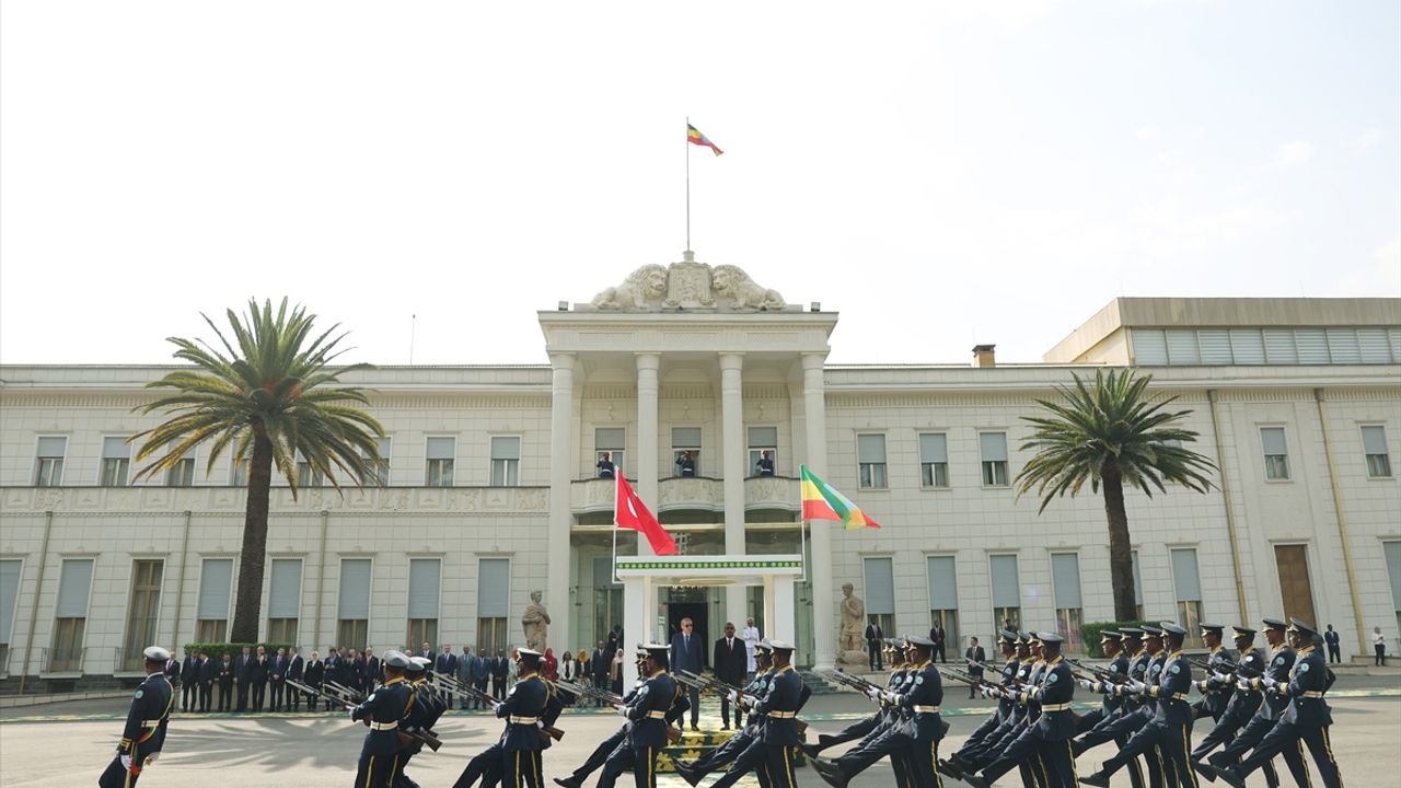 ADDİS ABABA (AA) - Cumhurbaşkanı Recep Tayyip Erdoğan, resmi ziyaret için geldiği Etiyopya'nın başkenti Addis Ababa'da Etiyopya Başbakanı Abiy Ahmed tarafından resmi törenle karşılandı.