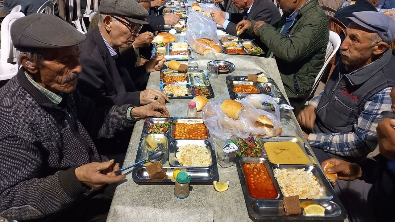 İftar vakti mahalle meydanındaki kapalı pazar yerinde bir araya gelen vatandaşlar, masrafı her gün bir kişi tarafından karşılanan yemeklerle oruç açıyor.