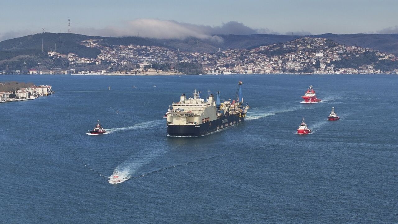 İSTANBUL (AA) - Türkiye'nin Karadeniz'de keşfettiği doğal gaz için boru döşeyen "Castorone" gemisi, İstanbul Boğazı'ndan geçti.