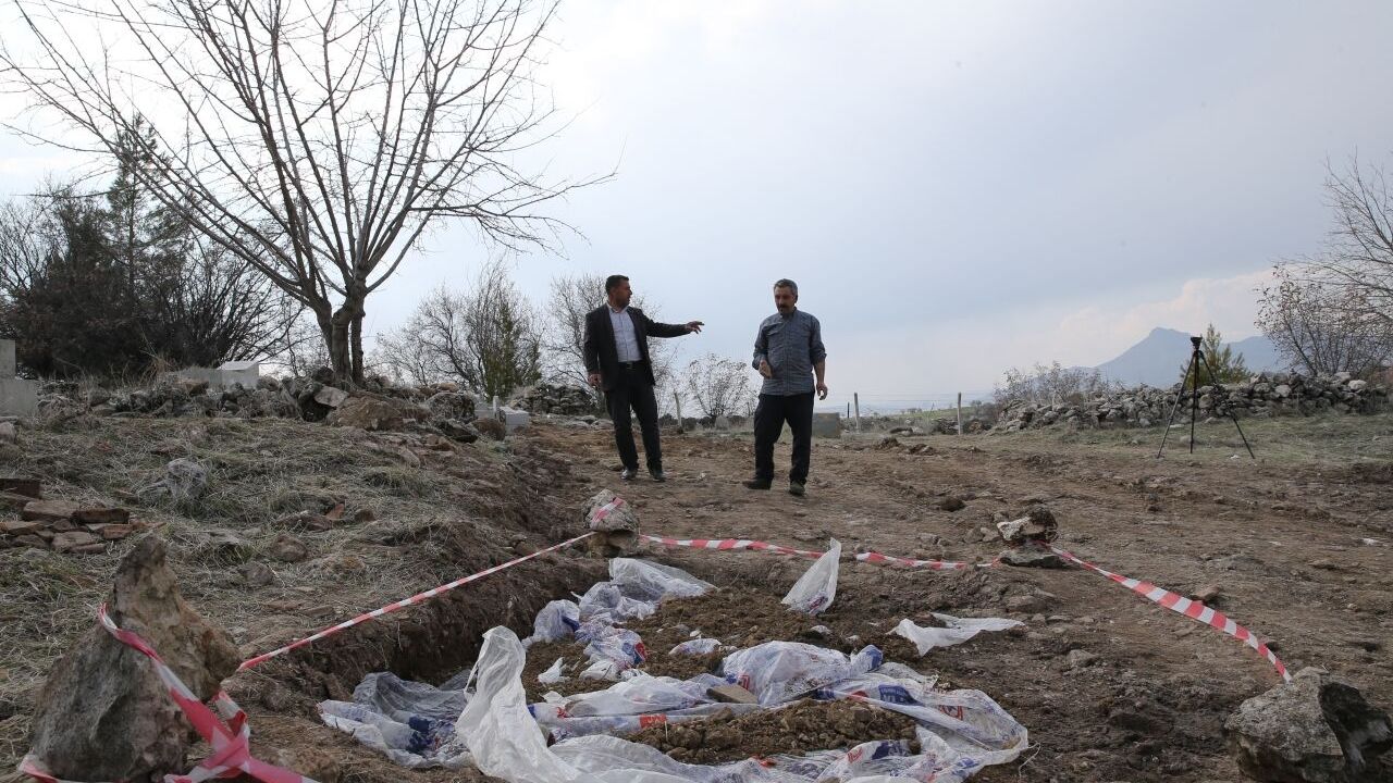 Mahalle muhtarı Hasan Akduğan, AA muhabirine, iş makinesiyle mezar yeri için kazı yapılırken mozaik tespit ettiklerini belirtti.
