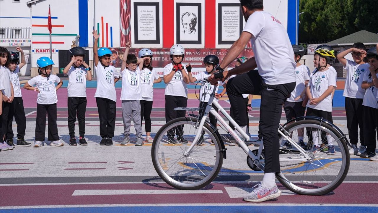 Beylikdüzü Büyükşehir İlkokulu'ndaki etkinlikte öğrenciler, bisiklet dersine katıldı.