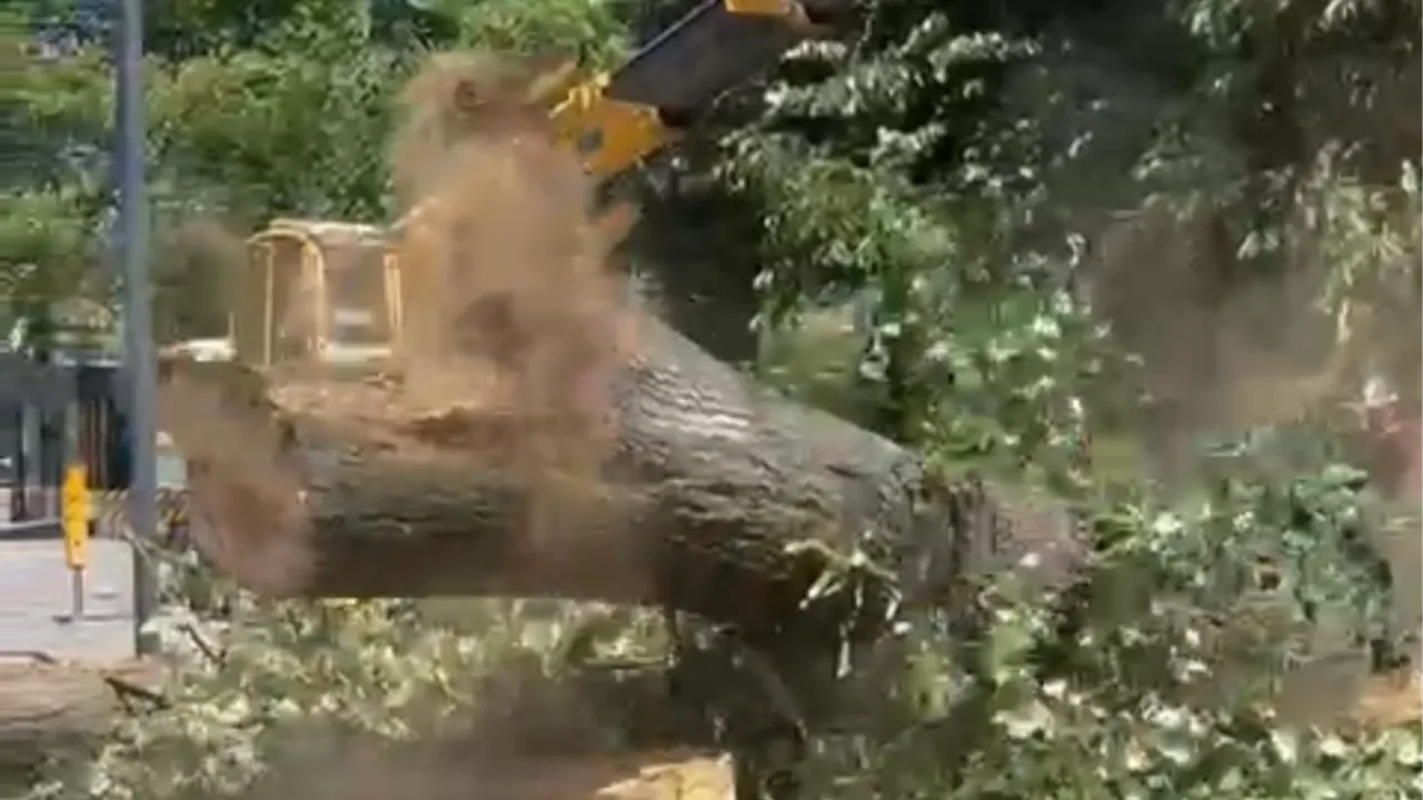 Kesim işlemi sırasında çevredekiler tarafından ilgiyle izlenirken, 70 yaşındaki bir vatandaş ağacın yıkılmasına üzüntü duyduğunu ifade ederek belediyeye tepki gösterdi.