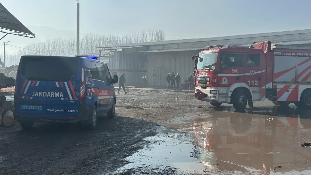 Düzce merkeze bağlı Kuşaçma köyünde orman ürünleri üretimi yapan fabrikada henüz sebebi belirlenemeyen bir yangın çıktı.DÜZCE (İGFA) - Düzce'de orman ürünleri üretimi yapan fabrikada henüz sebebi belirlenemeyen bir yangın çıktı.